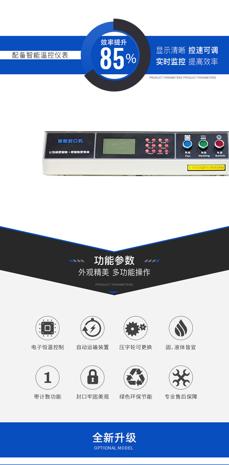 - 生產(chǎn)效率高:能夠?qū)崿F(xiàn)連續(xù)自動封口,大大提高了生產(chǎn)效率,適用于大規(guī)模生產(chǎn)作業(yè),減少了人工操作時間和勞動強(qiáng)度,可有效降低生產(chǎn)成本,提高企業(yè)的經(jīng)濟(jì)效益12.