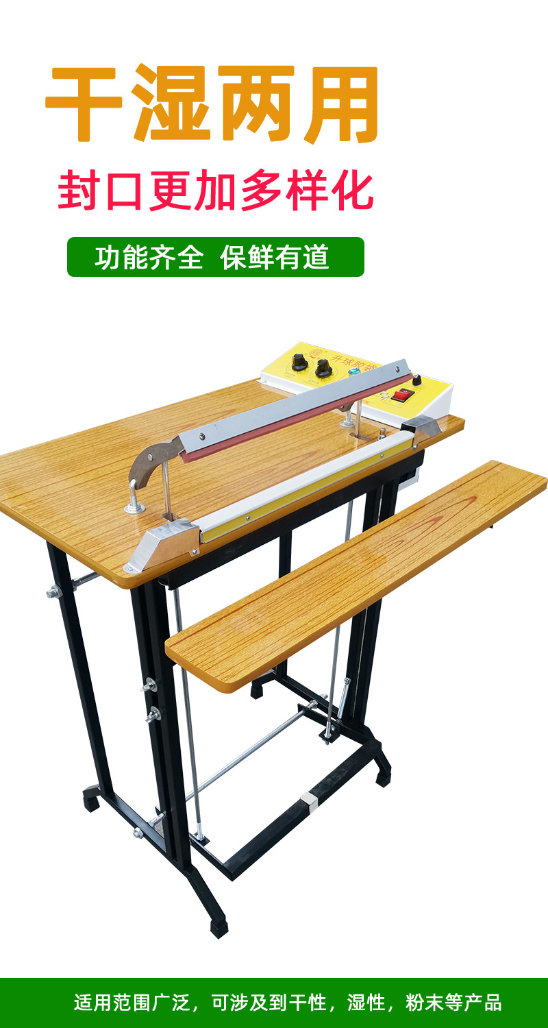 腳踏封口機使用方便,操作人員雙手可以自由地操作包裝材料,這對于形狀不規則、大小不同的物品包裝尤為方便