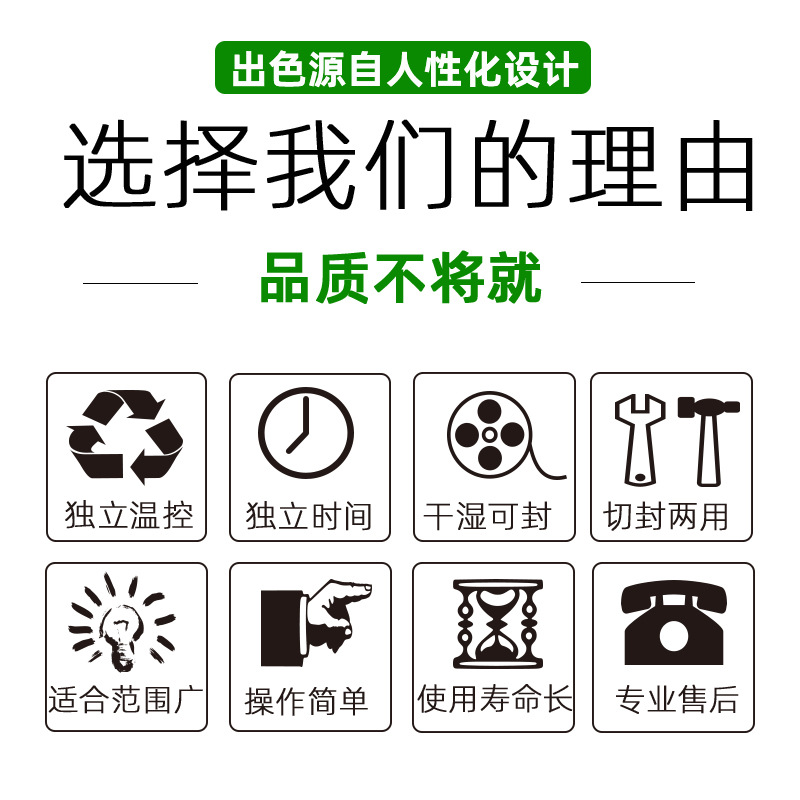 - 加熱系統:由加熱元件和溫度控制器構成。加熱元件常見的有電熱絲和陶瓷加熱塊。電熱絲加熱速度快,但溫度分布可能不夠均勻;陶瓷加熱塊則溫度分布相對均勻,不過加熱速度稍慢。溫度控制器可以讓用戶根據不同的包裝材料和封口要求,精確調節加熱溫度,溫度范圍一般在 100 - 300℃之間。
