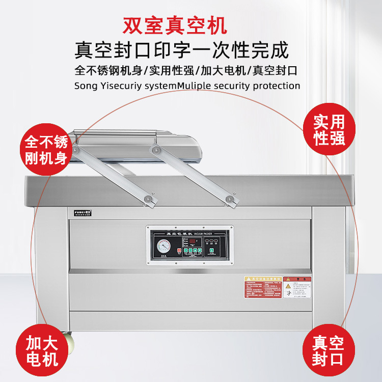 - 雙電機設(shè)計,吸力強勁:部分雙室真空包裝機采用雙電機設(shè)計,在相同負載下能夠更快速地完成抽真空工作,進一步縮短了單個包裝周期,提升了工作效率,節(jié)省了時間和人力成本.