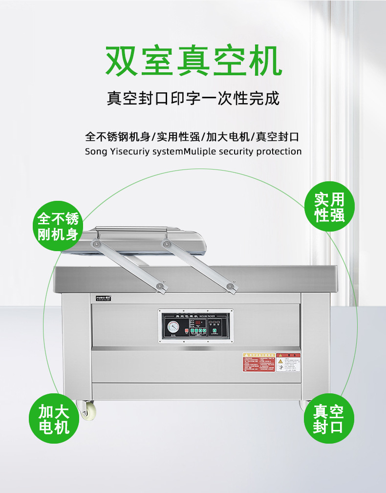 - 多重保護功能:一些雙室真空包裝機采用多重防護設(shè)計,如防磕、防撞等,防止產(chǎn)品在包裝過程中受到損壞,確保每一件產(chǎn)品都能完好無損地完成包裝.