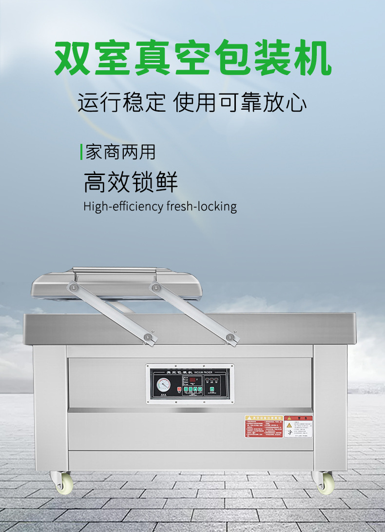 - 交替工作,提高效率:雙室真空包裝機擁有兩個獨立的真空室,可左右擺動或輪換使用。當一個真空室進行抽真空和封口操作時,另一個真空室可以同時準備下一批產(chǎn)品的包裝,如此循環(huán)往復,大大減少了等待時間,有效提高了整體包裝效率,尤其適用于大規(guī)模生產(chǎn)企業(yè)124.