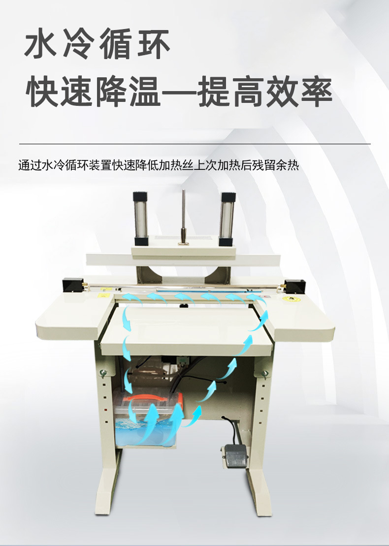 - 工作效率高:一方面,水冷封口機本身的封口速度相對較快,能夠在短時間內完成大量的封口操作。另一方面,由于水冷系統加快了封口后的冷卻速度,縮短了單個包裝的封口周期,進一步提高了整體工作效率。例如,與傳統自然冷卻或風冷的封口機相比,水冷封口機在相同時間內可以完成更多的包裝封口工作。