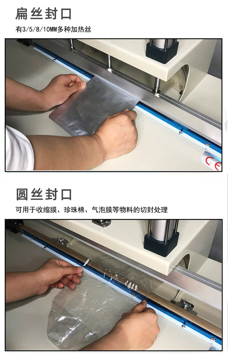 - 產品類型適用性:無論是小型的零售包裝產品,如零食袋、小化妝品瓶的外包裝,還是大型的工業包裝,如化工原料桶的封口、大型電子設備的防塵包裝,水冷封口機都能發揮作用。其可調節的封口參數和不同尺寸的封口裝置選項,使得它可以滿足不同類型、不同尺寸產品的包裝封口需求。