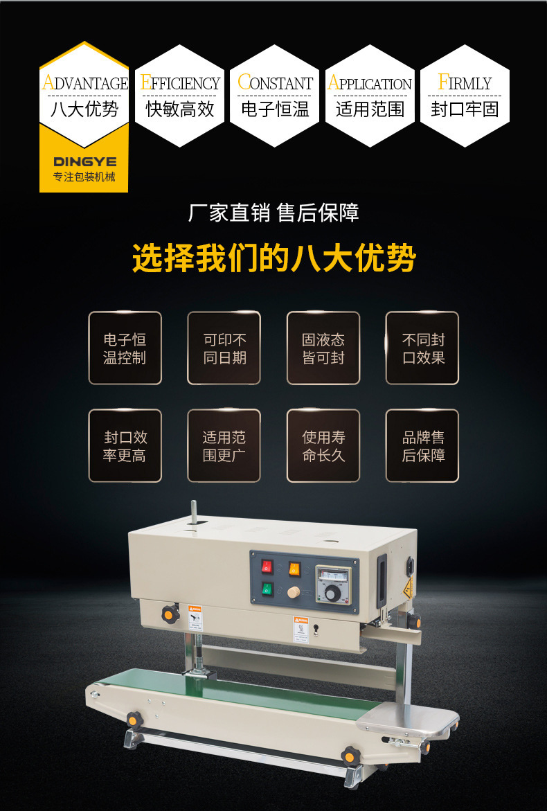 特點與優勢詳細說明- 高效性:連續式封口機的最大優勢在于其高效的封口能力。它可以在短時間內完成大量包裝材料的封口,大大提高了包裝生產線的生產效率。例如,在食品包裝廠,對于小型零食包裝袋的封口,它能夠每分鐘封口幾十甚至上百個包裝袋,滿足大規模生產的需求。