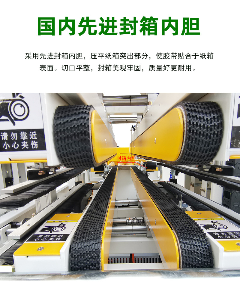 - 調節裝置:為了應對各種規格的紙箱,設有寬度調節和高度調節裝置。寬度調節可改變兩側封箱頭的間距,高度調節能調整上下封箱頭的垂直距離,操作簡便靈活。