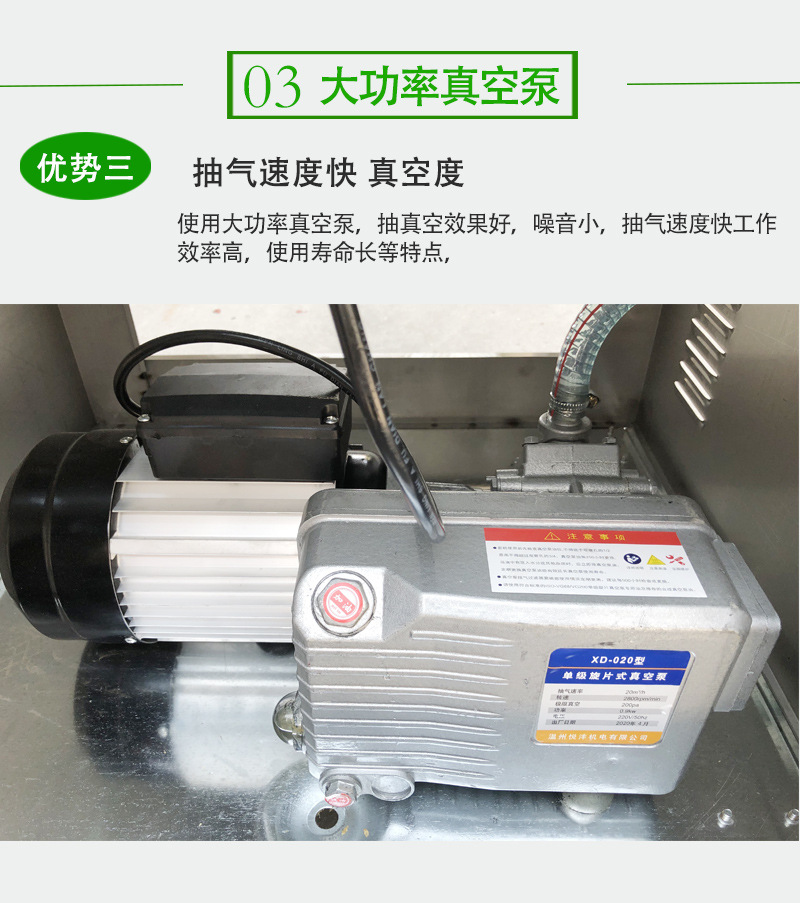 - 真空泵:作為關鍵動力部件,負責抽出空氣,常見類型有旋片真空泵、油封真空泵等。真空泵的功率直接影響抽氣速度與所能達到的真空度,功率越大,抽氣越快、真空效果越好,但能耗也相應更高。