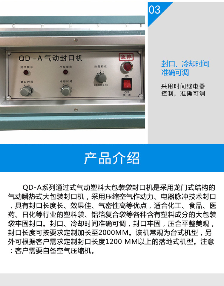 - 藥品包裝:無論是片劑、膠囊、粉劑還是液體藥品,臺式氣動封口機都能對相應的包裝進行封口,保證藥品的密封性和穩定性,防止藥品受潮、受污染,符合藥品包裝的嚴格要求。