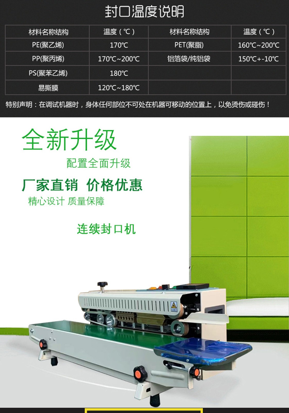 可定制化:部分連續封口機可以根據用戶的不同需求進行定制,如調整封口寬度、長度、印字內容等,以滿足各種特殊的包裝要求。