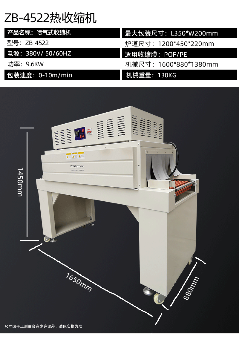 - 適用范圍廣:可適用于 POF、PVC、PE 等各種工業標準的收縮膜,廣泛應用于食品、化妝品、制藥、印刷、電子、五金、陶瓷、飲料等多個行業,適用于不同尺寸和形狀的產品包裝2。