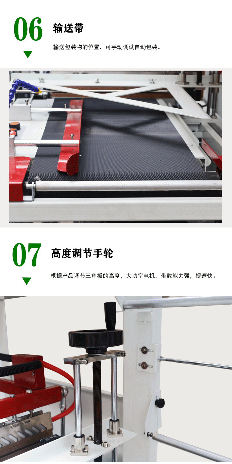 - 調節方便:當包裝物尺寸變動時,無需更換模具及制袋器,通過簡單手動調節三角板高度或相關參數,即可適應不同寬度、高度和長度的產品包裝14。