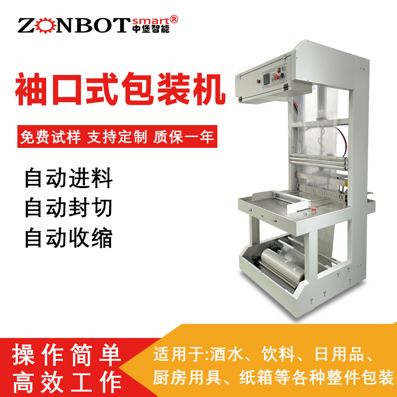 袖口式包裝機主要用于對各種固態物品進行包裝。它的工作原理是通過將包裝材料(如塑料薄膜)制成袋狀,然后把產品裝入袋中,再進行封口操作。其名字來源于包裝后的袋口形狀類似袖口,這種包裝形式較為牢固和美觀。 在包裝過程中,包裝材料先被拉成筒狀,產品通過輸送裝置被推送至包裝筒內,隨后通過一系列的機械動作,將包裝材料的兩端封口,完成包裝。 二、結構組成 包裝材料輸送系統 這個系統負責將包裝材料(如薄膜卷)平穩地輸送到包裝位置。它通常包括放卷裝置,能使薄膜卷在包裝過程中持續穩定地釋放薄膜。還有張力控制裝置,確保薄膜在輸