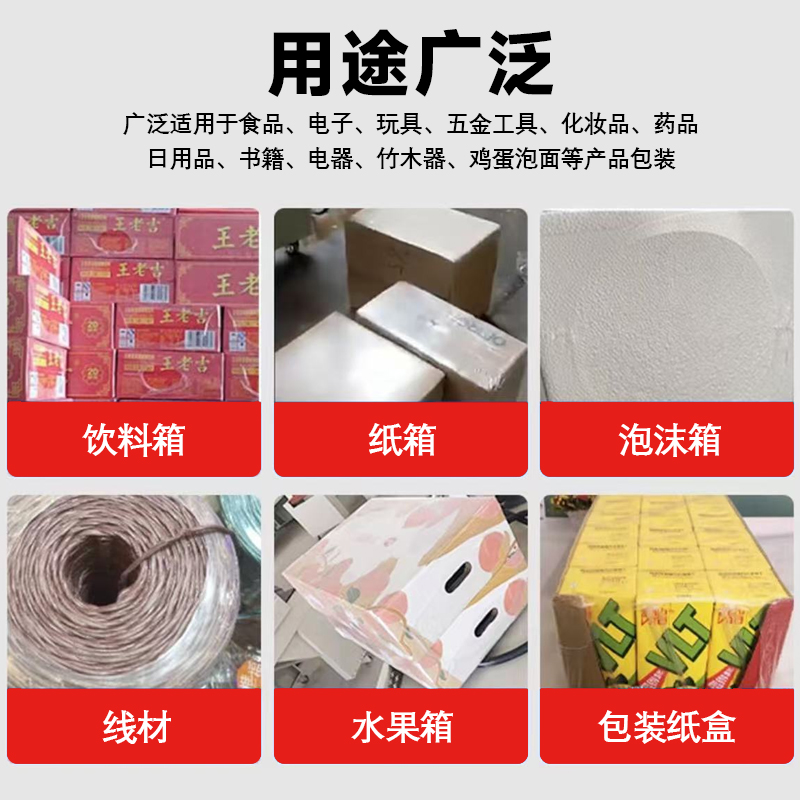 • 家居建材行業:可用于包裝小型家居用品、瓷磚、地板等產品。例如,對一些體積較小的家居裝飾品進行多件包裝,或者對瓷磚進行單張或多張集合包裝,方便搬運和銷售 。