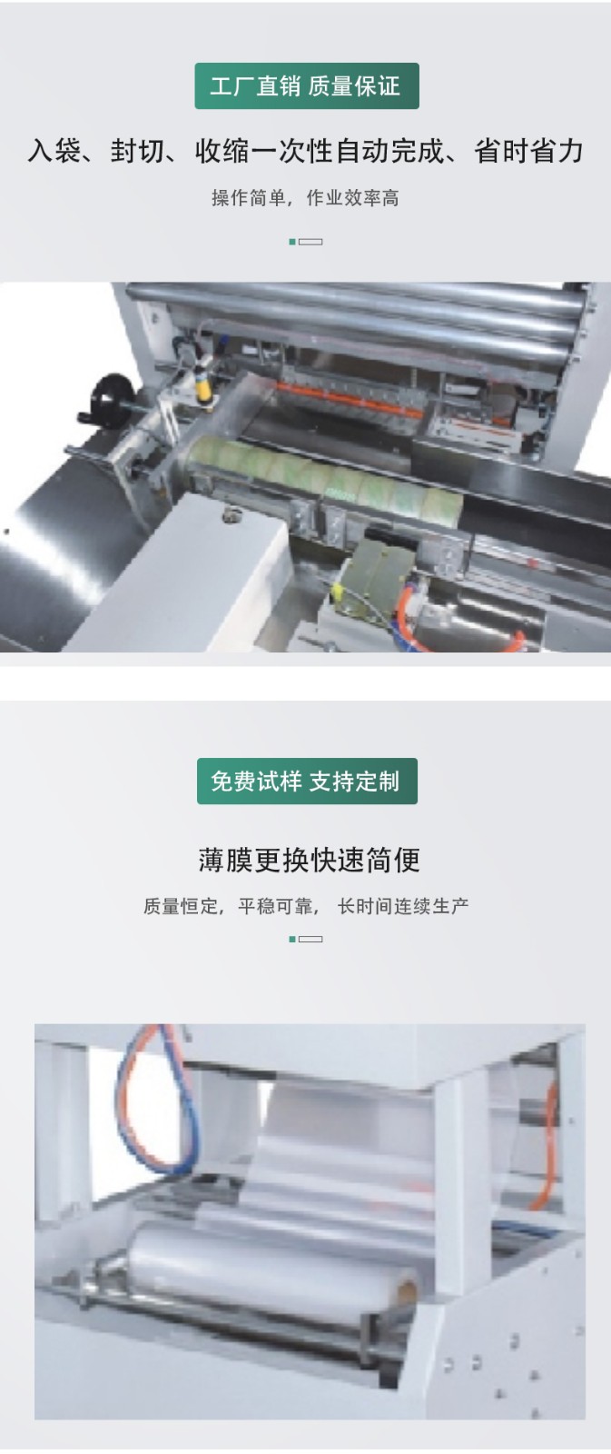 :機器運行所需的電功率,一般在 3 - 8kW 之間。功率大小與機器的包裝速度、加熱封口裝置、電機功率等因素有關。