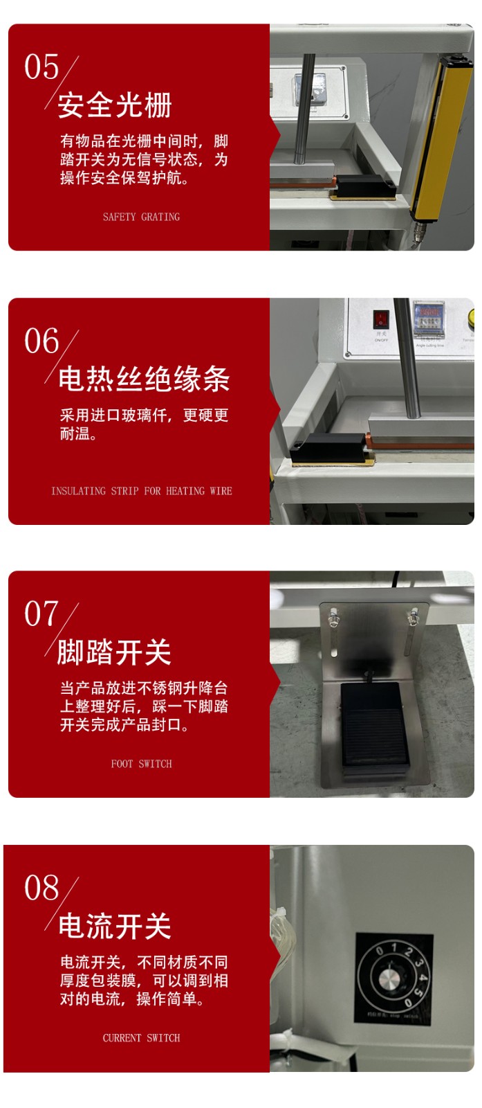 封口原理:主要采用熱封技術,通過發熱元件對包裝材料進行加熱,使其受熱融化,然后在壓力作用下將兩層材料融合在一起,達到封口的目的。