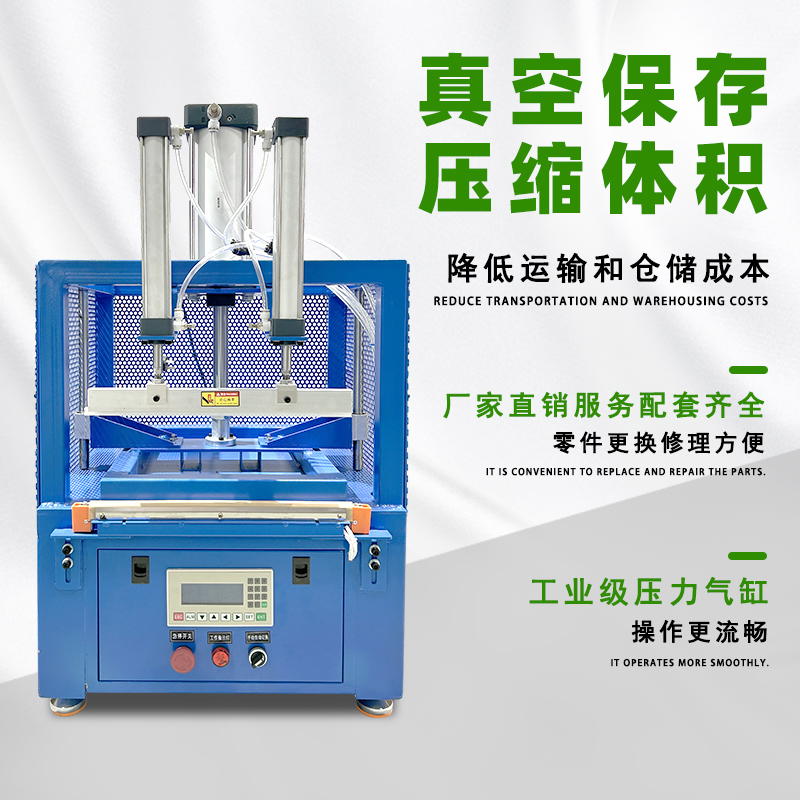 壓縮原理:依靠機械傳動、氣動或液壓系統產生壓力。當物品被放置在包裝位置后,機器的壓縮裝置會對其施加外力,擠壓包裝袋內的空氣,使物品被壓縮,達到減小體積、便于包裝和運輸的目的。