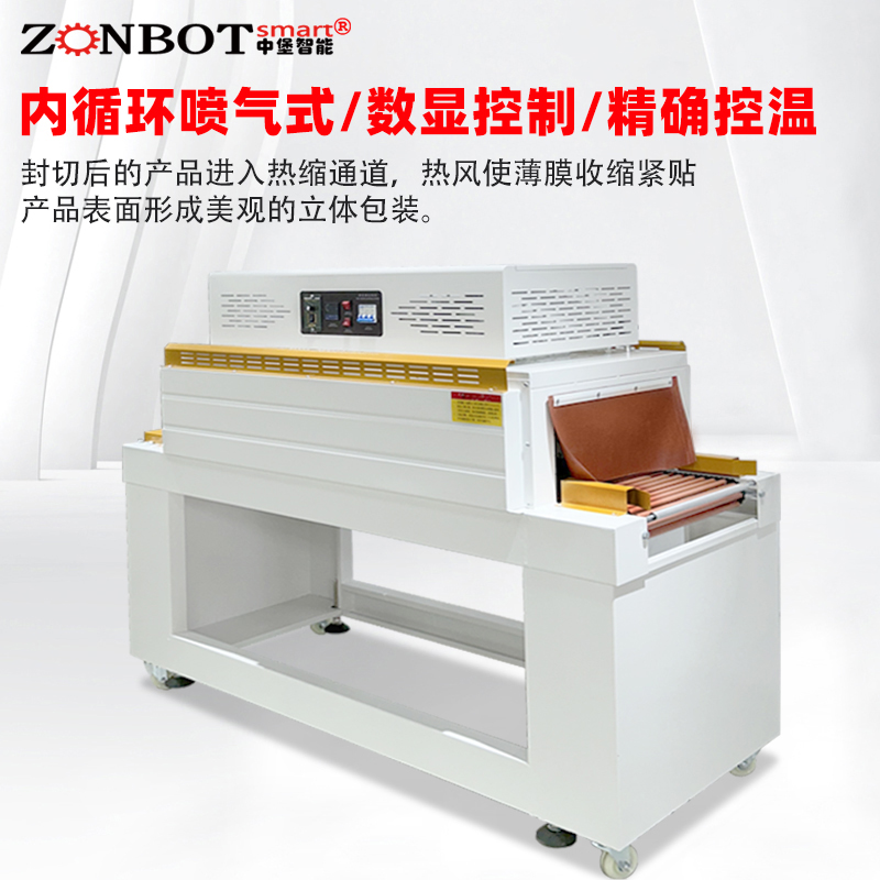 • 工作原理6:通常基于恒溫加熱技術,先將收縮膜加熱至所需溫度,然后對已包裹產品的收縮膜進行熱封切操作,再將完成封切的產品送入收縮爐內加熱,使收縮膜收縮并緊密貼合產品,最后經冷卻得到平整美觀的包裝效果。