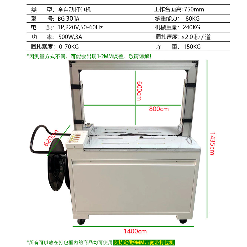 總之,這款301全自動打包機是您提高生產效率、降低成本、提高產品質量的理想選擇?,F在,趕快行動起來,讓這款全自動打包機為您的事業添磚加瓦吧!