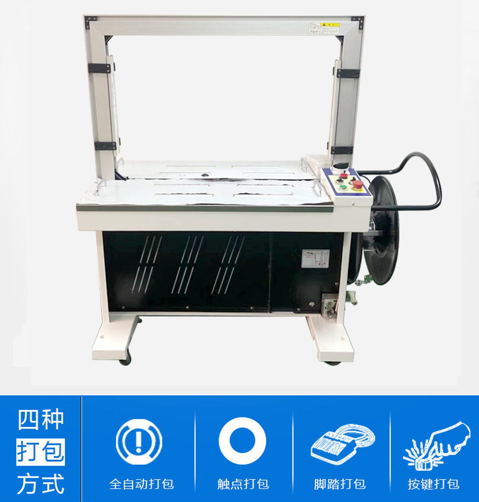 打包機又稱捆包機、打帶機或捆扎機,是使用捆扎帶捆扎產品或包裝件,然后收緊并將兩端通過發熱燙頭熱融粘接方式結合。打包機的功能是加固包裝物品的,使物品在搬運過程中、貯存中不因捆扎不牢而散落,同時還應捆扎整齊美觀。