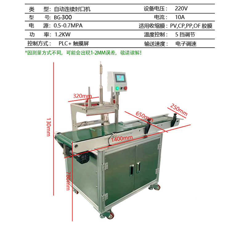其特點(diǎn)包括封口速度快、封口質(zhì)量穩(wěn)定、操作簡(jiǎn)便等。不同型號(hào)的連續(xù)式封口機(jī)在封口寬度、封口溫度控制、適用包裝材料等方面可能會(huì)有所差異。